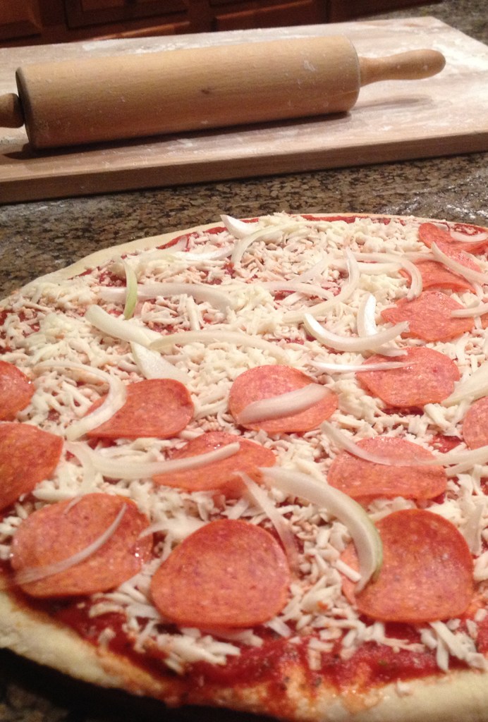 You will need: Parchment paper, rolling pin, pizza stone, toppings of your choice.